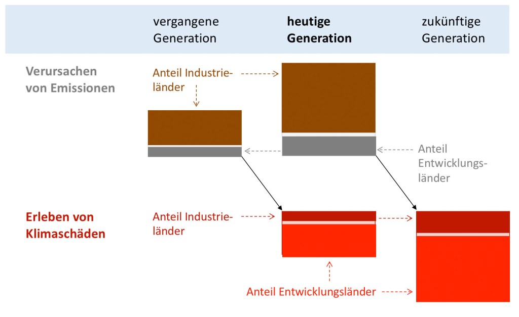 Hierbei sind die drei folgenden grundlegenden Fragen von Bedeutung: 1. Sind wir aus Gründen des Klimawandels gegenüber anderen zu etwas verpflichtet und wenn ja, wem gegenüber? (ethische Verpflichtungen gegenüber Personen) 2. Falls wir zu etwas verpflichtet sind, wozu sind wir verpflichtet und wozu nicht? (ethische Verpflichtungen zu bestimmten Handlungen) 3. Was sollen wir tun, um diesen Verpflichtungen nachzukommen? (mögliche Handlungen zur Erfüllung der ethischen Pflichten)