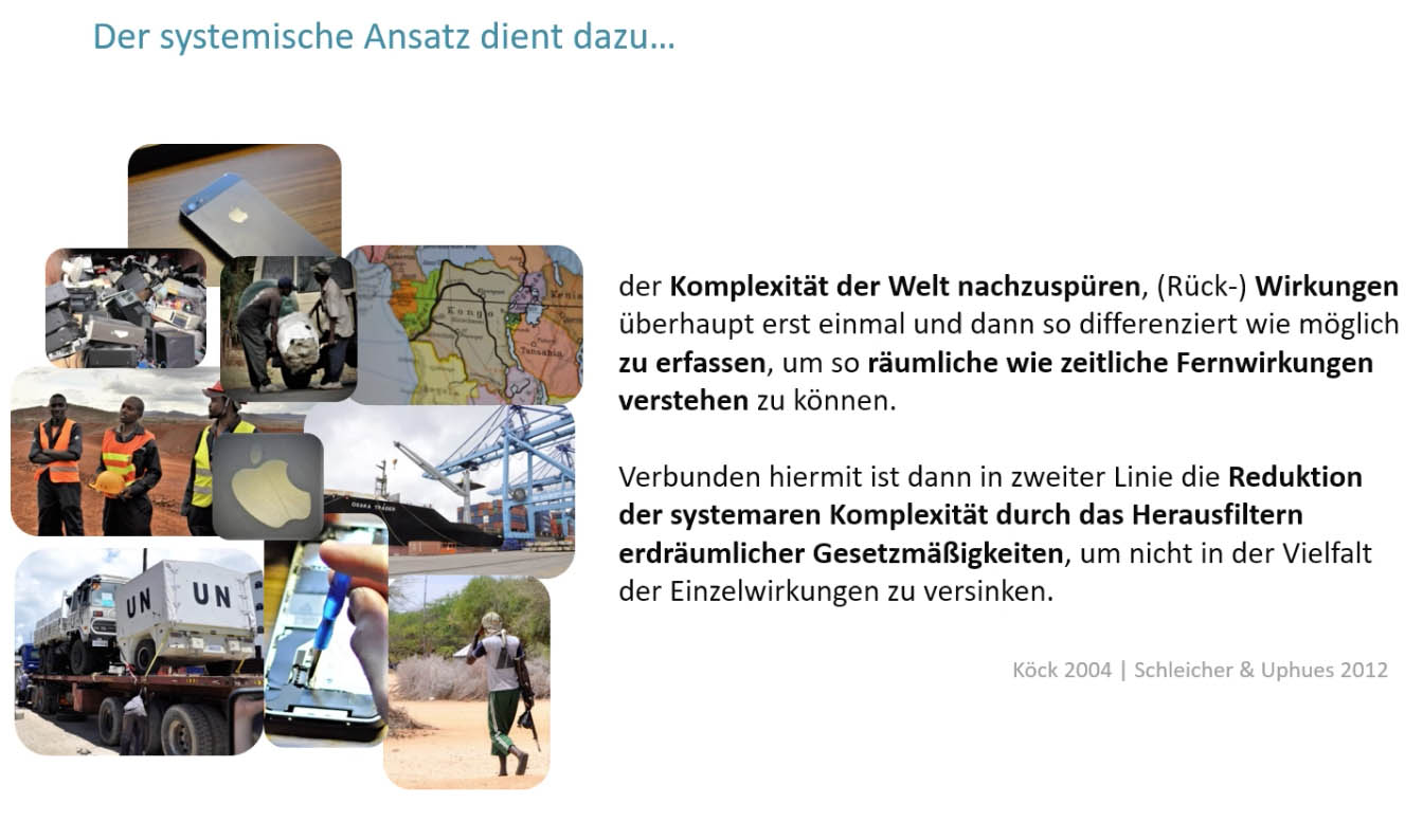 Im zweiten Vortrag geht es vertiefend um das Konzept der Systemkompetenz im Geographieunterricht. Über die Beispiele »Kinderarbeit in Ländern des Globalen Südens“ und „Regenwaldabholzung«.