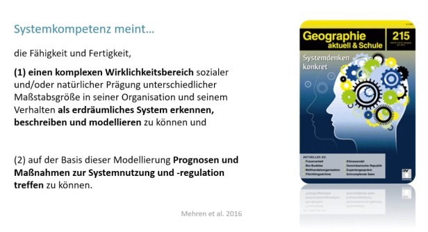 Die Ausführungen zur Systemkompetenz beziehen sich auf das von Prof. Rainer Mehren (Geographiedidaktik der JLU-Gießen) und Prof. Armin Rempfler (Universität Luzern) erarbeitete Modell zur Messung des systemischen Denkens bei Schüler*innen im Projekt GeoSysko. Frank Fischer führt verschiedene Aufgabenlösungen von Schüler*innen an und erklärt genau, wie man zur Einstufungen der Kompetenz-Niveaustufen gelangt. Abschließend führt er die hierbei gewonnenen grundlegenden Erkenntnisse noch einmal zusammen mit den Überlegungen zu den Aufgabentypen.