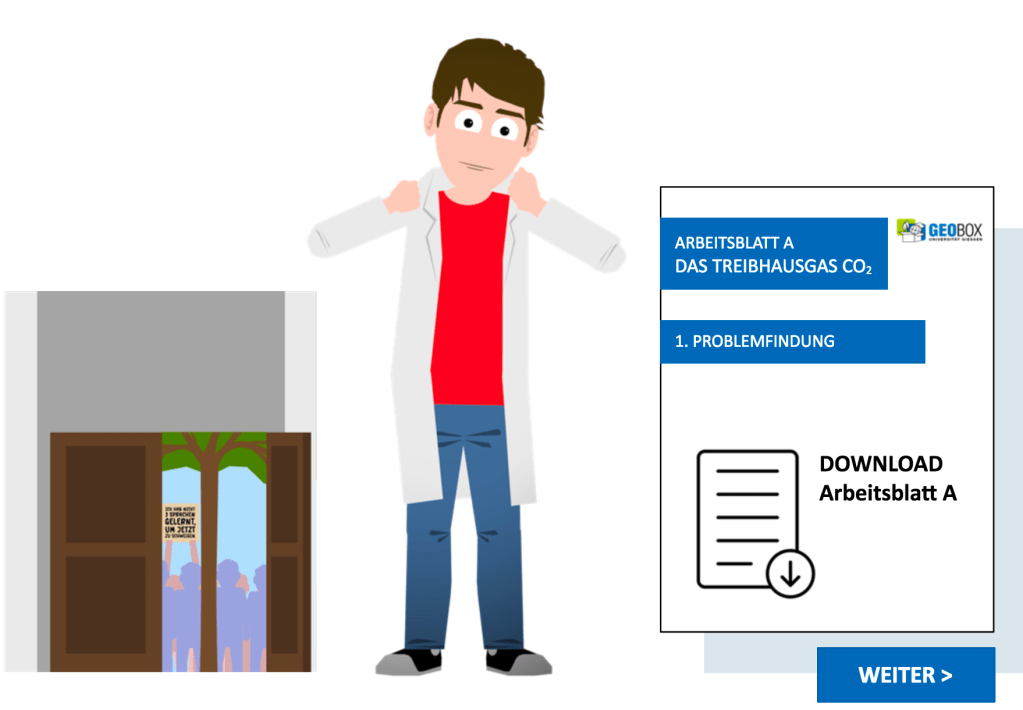 Dort müssen sie alle Schritte des naturwissenschaftl. Erkenntnisganges durchlaufen. Begleitet werden sie dabei von einem Arbeitsblatt. Am Ende des Experiments gibt es ein Erklärvideo zum atmosphärischen und anthropogenen Klimawandel, mit dessen Hilfe die Schüler das Experiment interpretieren.