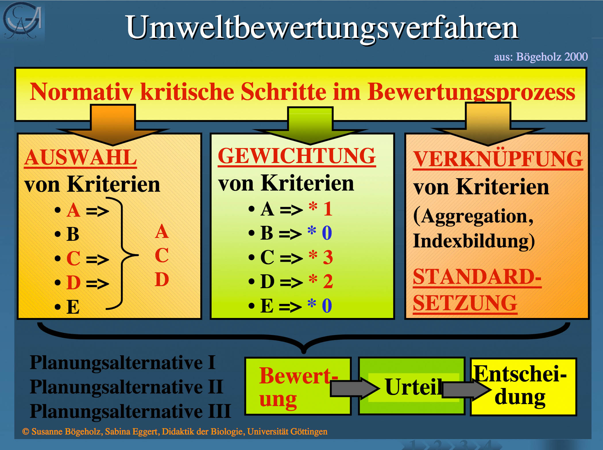 Folien aus: Bögeholz, Susanne / Eggert, Sabina (2005): „Systematisches Bewerten im Biologieunterricht“. 3. zentrale Fortbildungstagung für Set-Koordinator(inn)en im BLK-Programm SINUS-Transfer. Soltau.