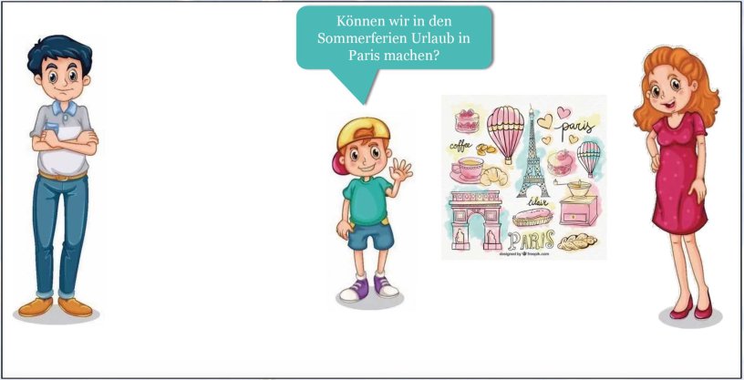Aus diesem Grund wird das Bewertungsmodell hier möglichst niederschwellig eingeführt, gleichzeitig werden aber die für die Entscheidung relevanten Inhalte verhandelt. So werden, wie bereits angedeutet, sowohl die wählbaren Handlungsalternativen Autofahrt, Zugfahrt und Flug als auch die bewertungsrelevanten Kriterien am Stundenbeginn und durch das Material vorentlastet, um die Komplexität der Entscheidungsmatrix zu reduzieren. So sind von der Entscheidung zunächst nur die im fiktionalen Rahmen eingeführten Familienmitglieder betroffen und nicht etwa die Gesellschaft, wie es bei der deutlich komplexeren Entscheidung, ob es eine Kerosinsteuer geben sollte, der Fall wäre.