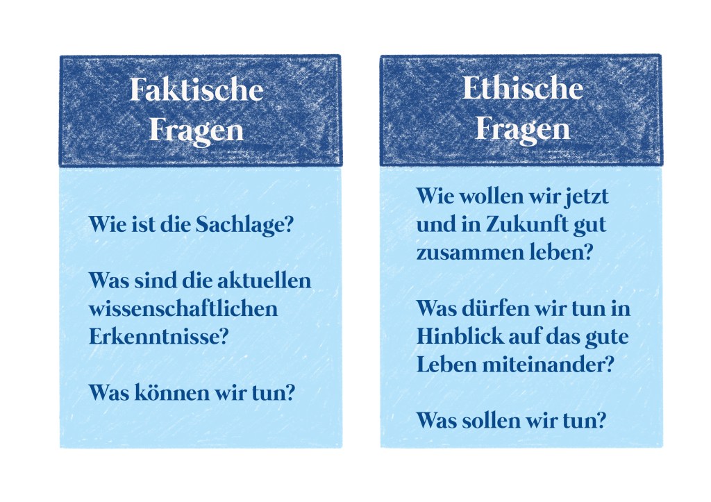 Dieses „zweimal Nachdenken“ bedeutet aber eben gerade auch, den ethischen Fragen nachzuspüren. Denn es geht genau um diese Frage: Was dürfen/sollen wir tun? Oder konkret: Ist es ethisch vertretbar, Müll abzufischen und dafür Mikroorganismen aus dem Meer zu entnehmen? Welche Kriterien sind für die Entscheidung dieser Frage wesentlich?
