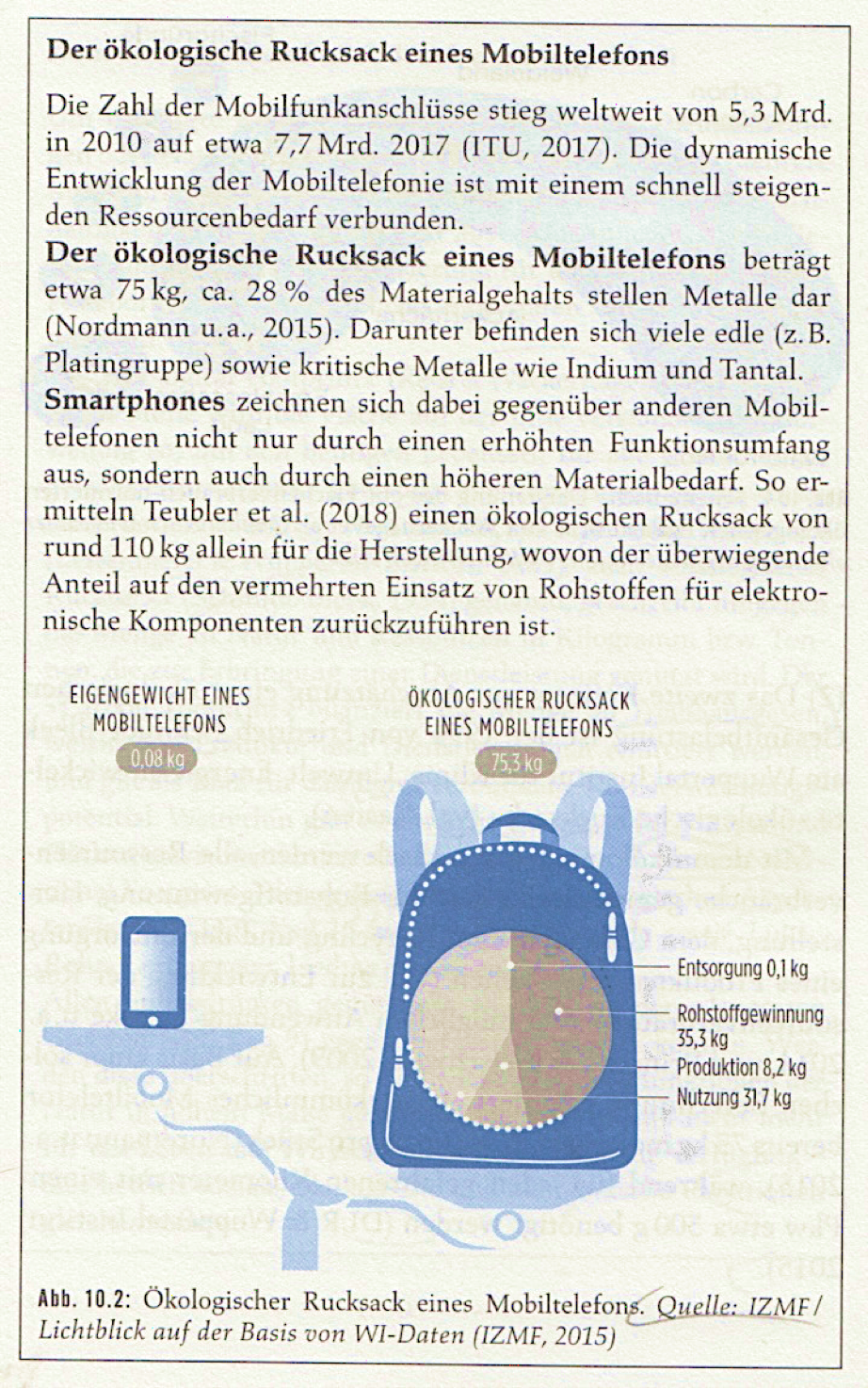 Abb. 1: Ökologischer Rucksack eines Mobiltelefons, Abb. 2: Die elf Dimensionen guten Lebens der OECD
