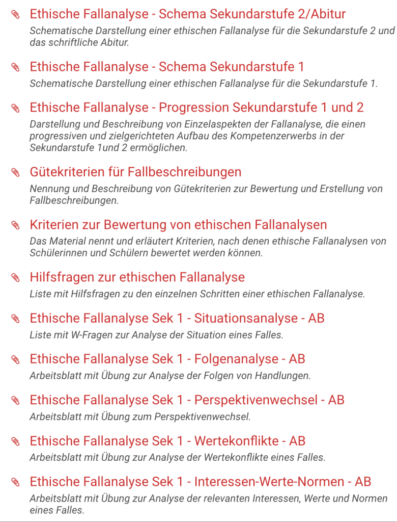 Fachredaktion Ethik (o. J.). Ethische Fallanalyse. Fachportal des Landesbildungsservers Baden-Württemberg.