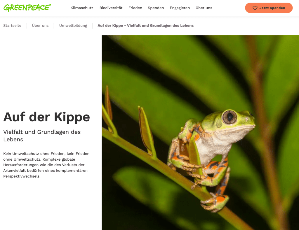 Das Mitte des Jahres 2022 erschienene zweite Material der Greenpeace Reihe „Umwelt und Frieden“ widmet sich unter dem Titel „Auf der Kippe“ dem Thema Biodiversität. Der Titel der Bildungsmaterialreihe signalisiert unmissverständlich, dass Umweltzerstörungen global vielfältige und insbesondere für indigene Gruppen lebensbedrohliche Konflikte mit sich bringen. Und doch ergeben sich auch vor diesem dramatischen Hintergrund Möglichkeiten, das Thema lösungsorientiert anzugehen und zu diskutieren. Dies wird nachfolgend an einigen ausgewählten Beispielen dargelegt.