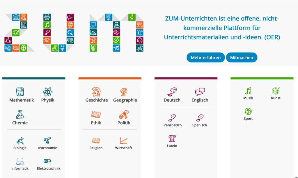 ZUM-Unterrichten ist eine Plattform der ZUM, auf der qualitativ hochwertige, freie Lernmaterialien (OER) veröffentlicht werden, die innnerhalb mehrerer ZUM-Projekte entstanden sind. Für diese Materialien wurde ein einheitlich strukturiertes Layout geschaffen, das in vielen Bereichen dem Ansatz des programmierten Lernens in dem Sinne folgt, als die Lernmaterialien, online und in der Regel linear durchlaufen werden, so dass die Schüler*innen schrittweise einen eigenen Arbeitsprozess durchlaufen können. Neben diesem Format finden sich aber auch materialbasierte Aufgaben, die von den Lehrpersonen z. B. in Form von Arbeitsblättern in eigene Materialien übernommen werden können. Die Lernmaterialien stehen unter einer offenen Lizenz (Creative Commons CC BY-SA) und können daher kopiert, verwendet und angepasst werden. ZUM hat Richtlinien zur Qualitätssicherung formuliert, damit möglichst alle Materialien klar struktuiert, vollständig und für den direkten Einsatz im Unterricht geeignet sind.