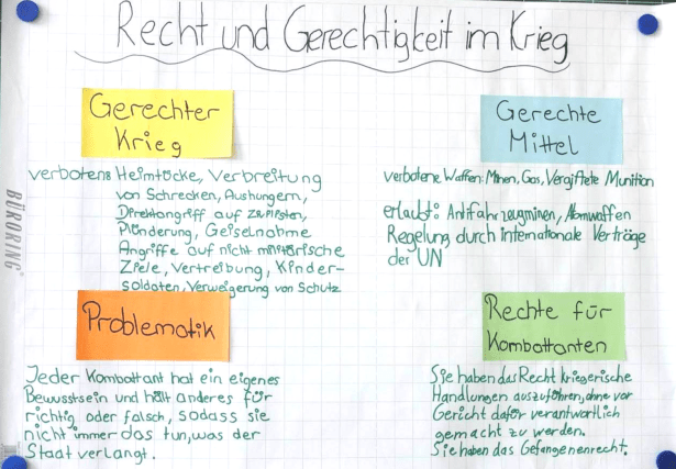 Erst mit einem Grundverständnis der komplexen Verhältnisse zwischen nationaler und internationaler Gerichtsbarkeit, moralischen und legalen Rechten und Pflichten von Staaten und Individuen, Deutungen der Reichweite der jeweiligen Normen, sowie Erfolgen und Grenzen des Ringens um Gerechtigkeit auch jenseits staatlicher Realpolitik lassen sich Kriegshandlungen und Friedensbemühungen einordnen und verstehen. Die folgenden Unterrichtseinheit bietet ein Materialarrangement mit dem sich wichtige Grundlagen erarbeiten, reflektieren und diskutieren lassen.