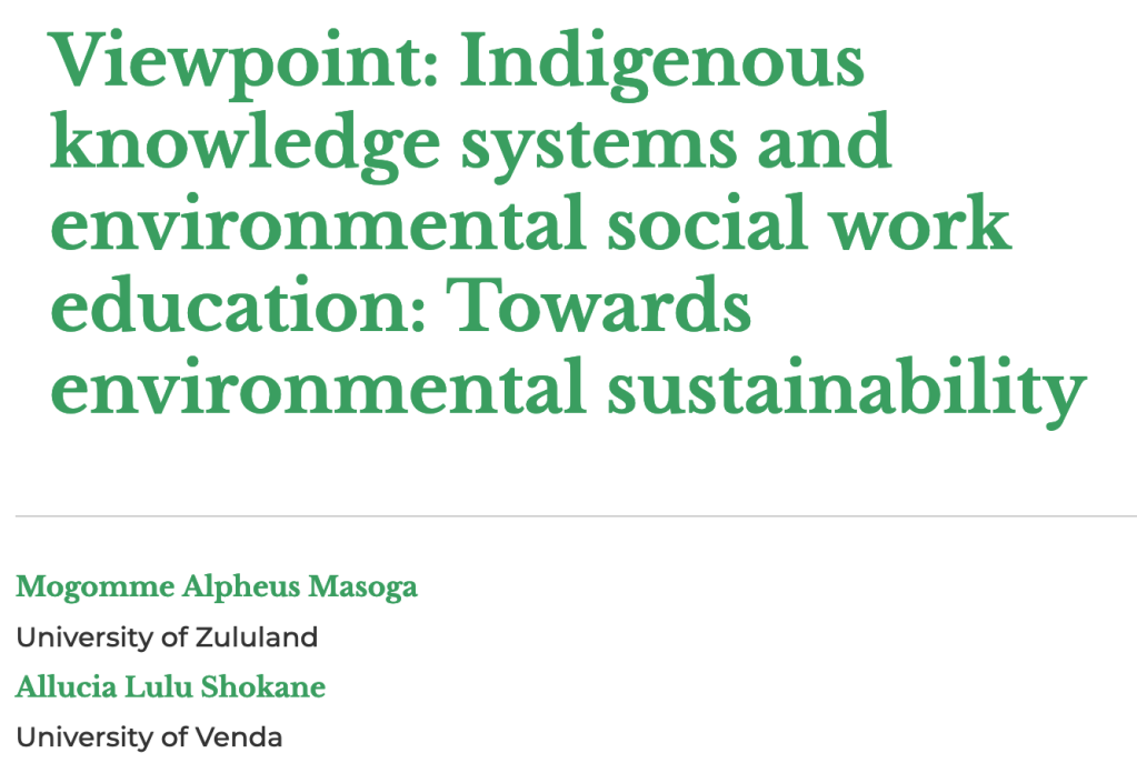 Viewpoint: Indigenous knowledge systems and environmental social work education: Towards environmental sustainability