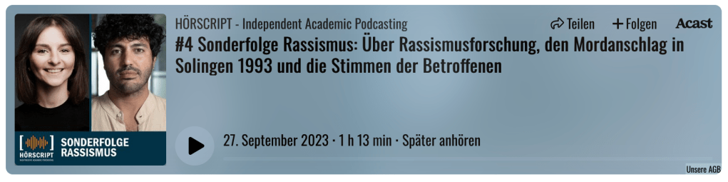 Text: Stefan Applis (2023) unter engem Bezug auf #4 Sonderfolge Rassismus: Über Rassismusforschung, den Mordanschlag in Solingen 1993 & die Stimmen der Betroffenen