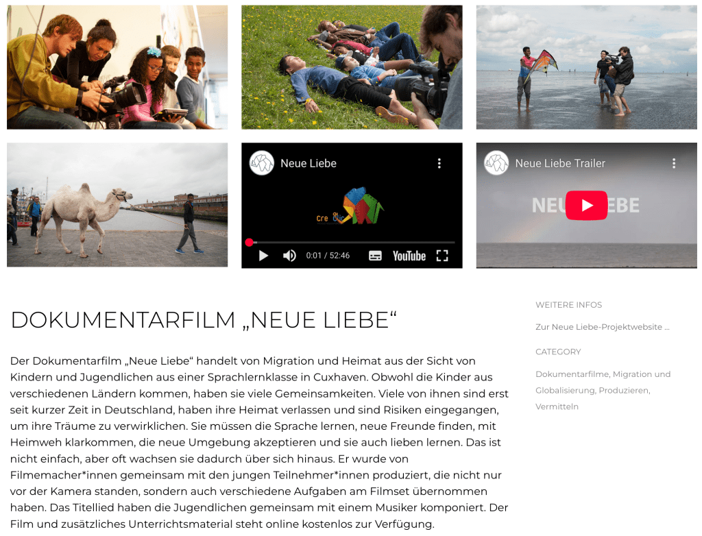 Der Film “Neue Liebe” bietet Jugendlichen die Möglichkeit, sich mit den Themen Migration, Flucht und Heimat auf einer emotionalen Ebene auseinanderzusetzen, da sie sich mit