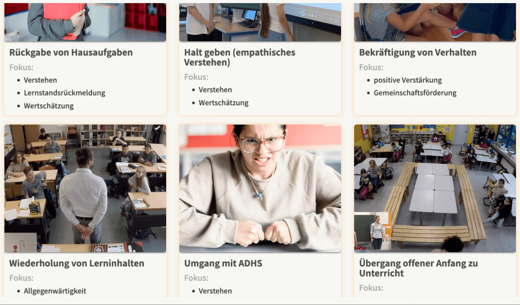 Für alle Lehrpersonen, die sich intensiv mit der eigenen Professionsentwicklung auseinandersetzen möchte, werden umfangreiche Materialien zur Verfügung gestellt, unter anderem ein Zugang zur Videoplattform Clipss (Classroom Leadership In Primary and Secondary Schools).