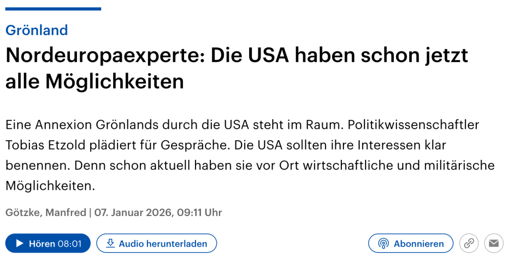 Kurz vor Beginn seiner zweiten Amtszeit bekräftigte Trump nun erneut, dass der Besitz und die Kontrolle Grönlands eine „absolute Notwendigkeit“ für die nationale Sicherheit der USA sowie für die Freiheit in der Welt sei. „Dieser Deal muss zustande kommen“, erklärte er und ließ offen, ob wirtschaftliche oder militärische Maßnahmen ergriffen werden könnten, um die Insel unter US-Kontrolle zu bringen. Zwar zeigen die Grönländer grundsätzlich Interesse an einer engeren Partnerschaft mit den USA, doch ihre oberste Priorität bleibt die Wahrung ihrer Unabhängigkeit.