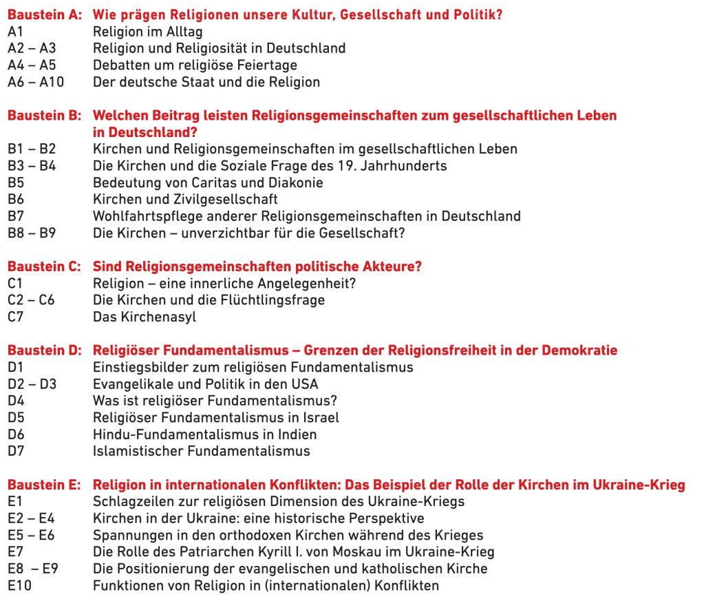 Die Ausgabe „Religion und Öffentlichkeit“ von „Politik & Unterricht“ lädt dazu ein, Religion sowohl im persönlichen Alltag als auch in ihren gesellschaftlichen und politischen Dimensionen zu erkunden. Im Mittelpunkt stehen dabei der gesellschaftliche Beitrag von Religionsgemeinschaften sowie ihr Auftreten als politische Akteure. Anhand evangelikaler Bewegungen in den USA und des Salafismus in Deutschland werden zudem Erscheinungsformen religiösen Fundamentalismus beleuchtet. Abgerundet wird das Heft durch eine Auseinandersetzung mit der Rolle von Religion in internationalen Konflikten – exemplarisch verdeutlicht am russischen Angriffskrieg gegen die Ukraine.